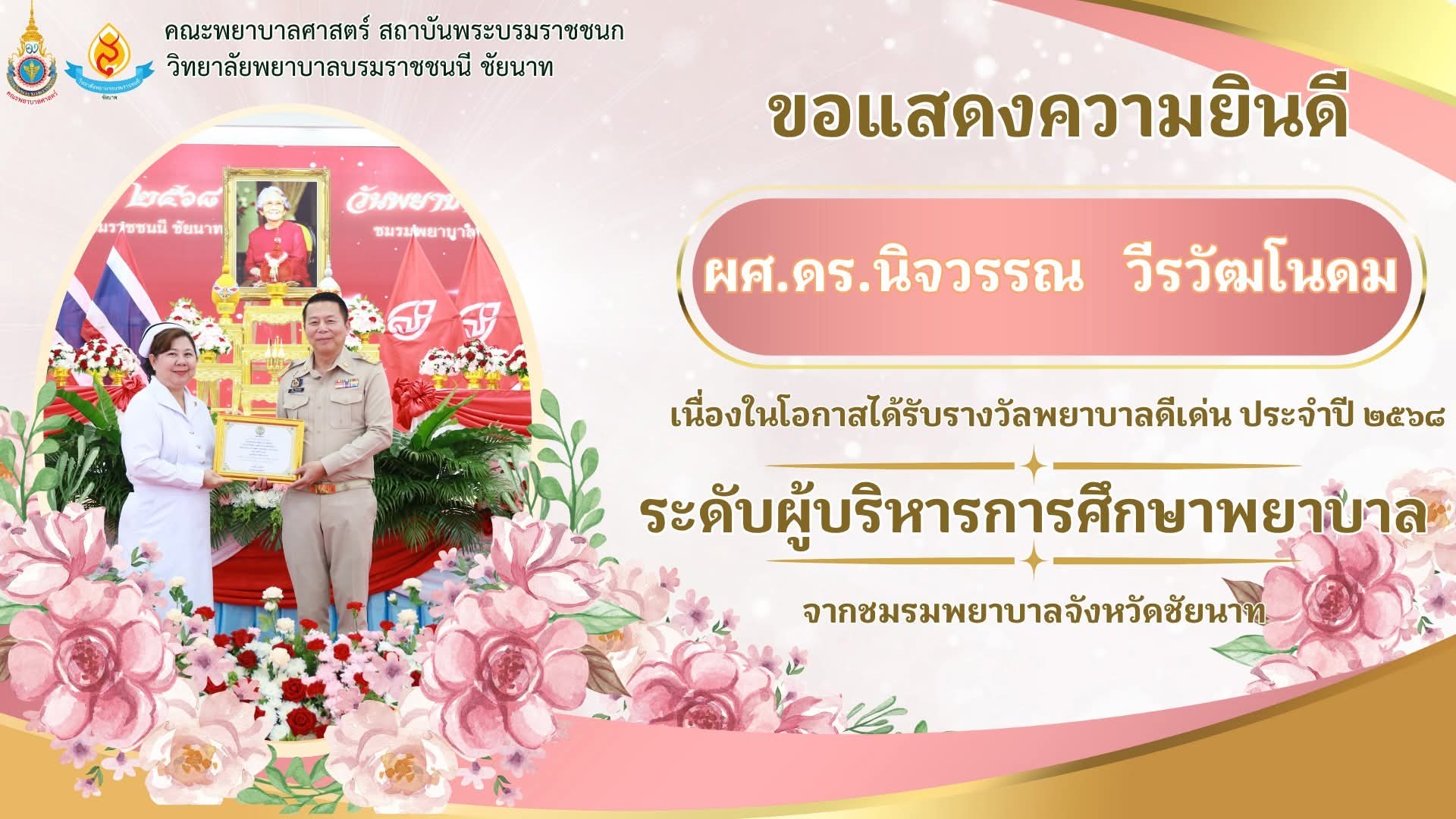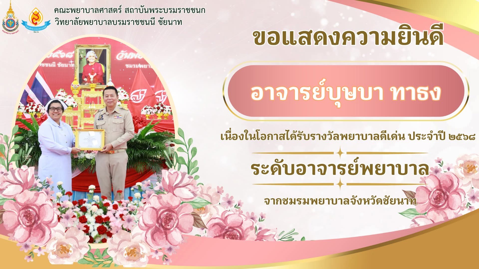 เนื่องโอกาสได้รับรางวัล “พยาบาลดีเด่น ประจำปี 2568” จากชมรมพยาบาลจังหวัดชัยนาท