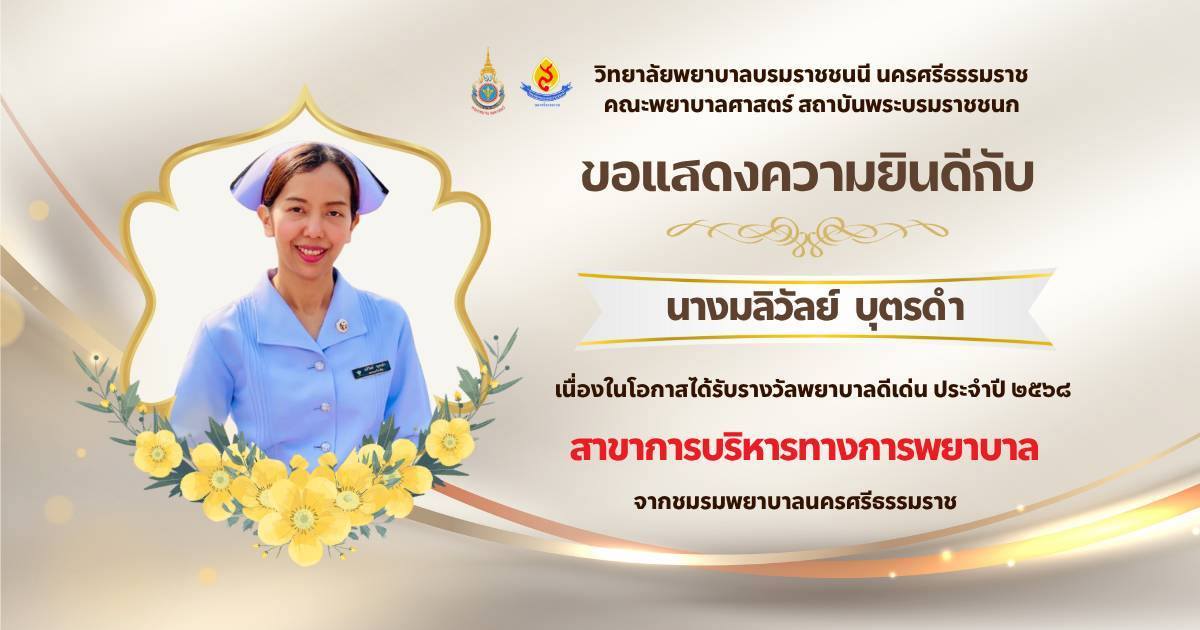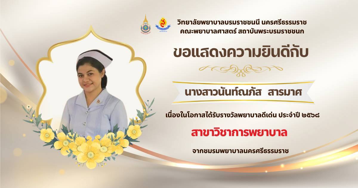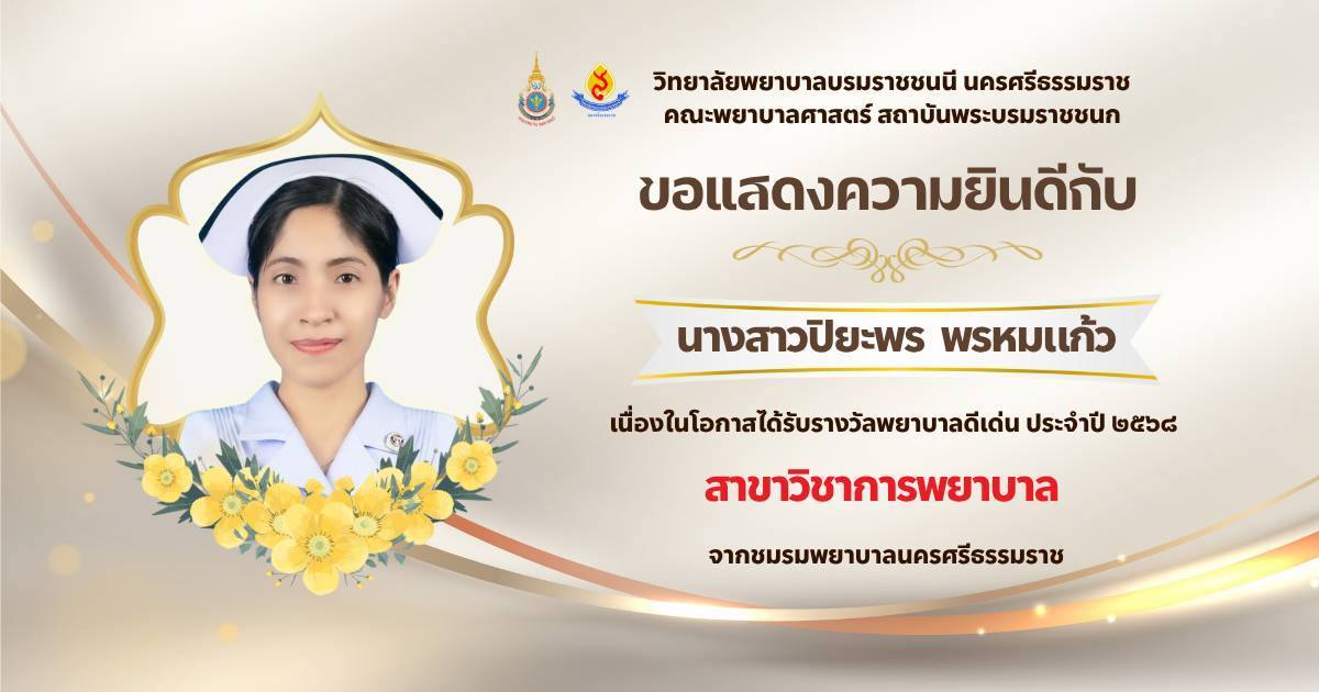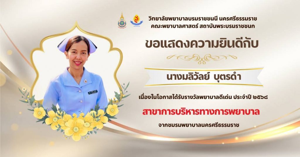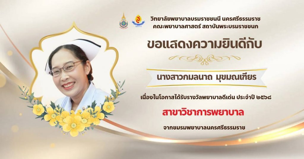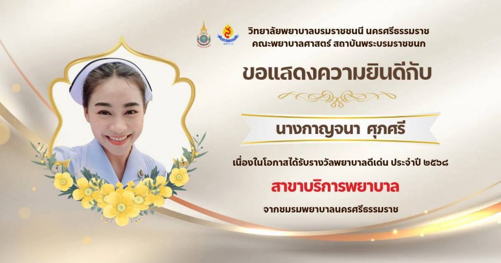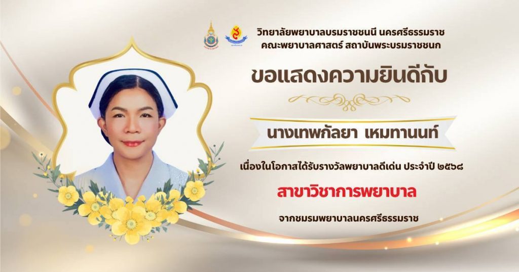 เนื่องโอกาสได้รับรางวัล “พยาบาลดีเด่น ประจำปี 2568” จากชมรมพยาบาลนครศรีธรรมราช