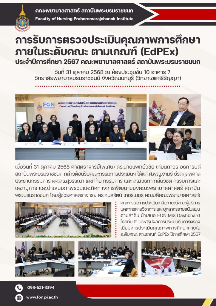 คณะพยาบาลศาสตร์ สถาบันพระบรมราชชนก รับการตรวจประเมินคุณภาพการศึกษาภายในระดับคณะ ตามเกณฑ์ (EdPEx)