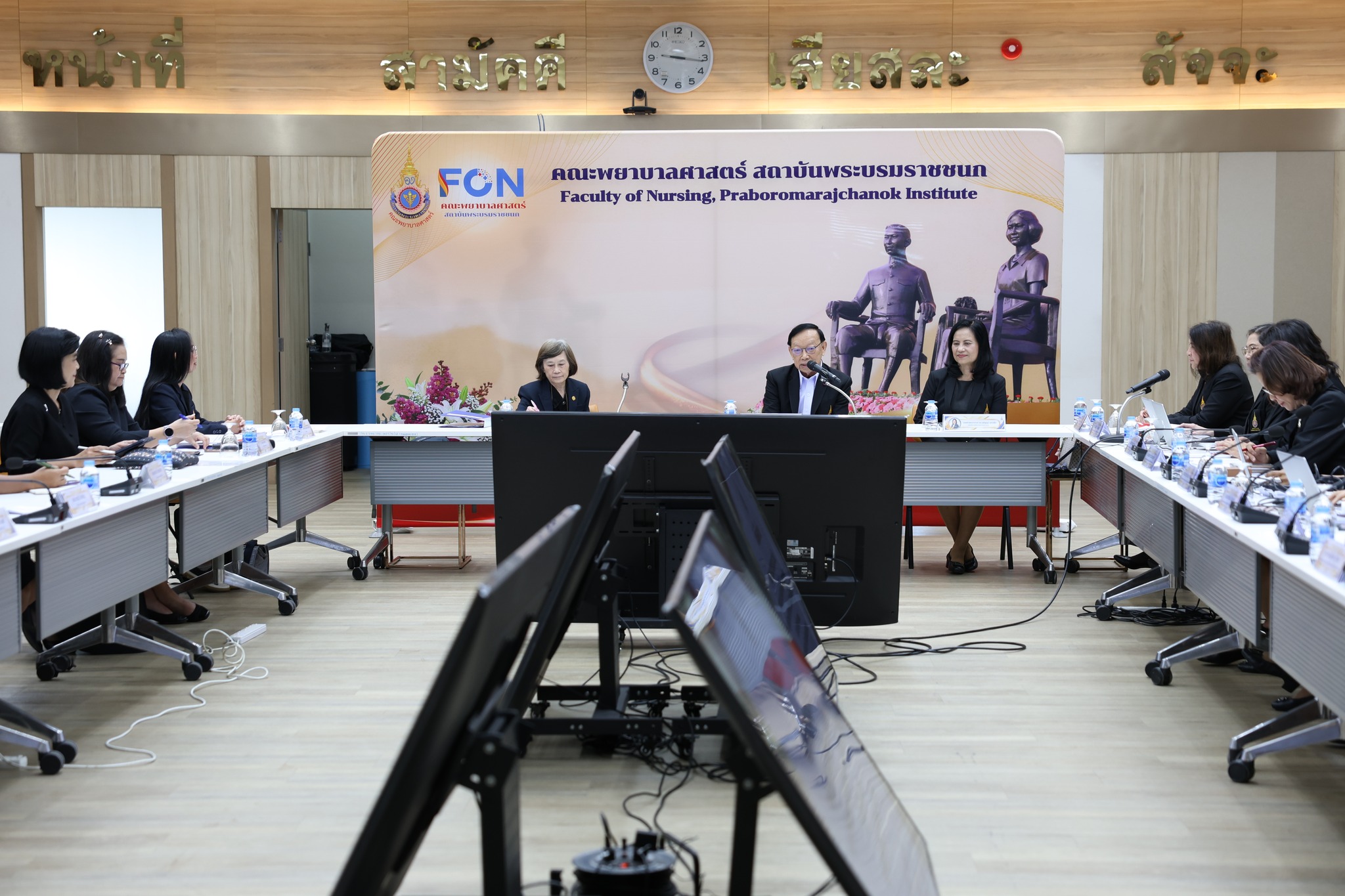 เมื่อวันที่ 31 ตุลาคม 2568 ศาสตราจารย์(พิเศษ) ดร.นายแพทย์วิชัย เทียนถาวร อธิการบดีสถาบันพระบรมราชชนก กล่าวต้อนรับคณะกรรมการประเมินฯ ได้แก่ ศ.พญ.จามรี ธีรตกุลพิศาล ประธานกรรมการ ผศ.ดร.สุวรรณา เดชาทัย กรรมการ และ ดร.เวธกา กลิ่นวิชิต กรรมการและเลขานุการ และนำเสนอภาพรวมและทิศทางการพัฒนาของคณะพยาบาลศาสตร์ สถาบันพระบรมราชชนก โดยผู้ช่วยศาสตราจารย์ ดร.กมลรัตน์ เทอร์เนอร์ คณบดีคณะพยาบาลศาสตร์